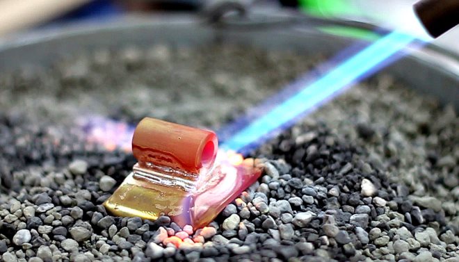 - После того как припой расплавится под воздействием пламени газовой горелки, он заполнит зазор между деталями, обеспечив их надежное соединение.