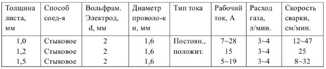 Ориентировочные настройки аппарата для TIG-сварки листов из нержавеющей стали