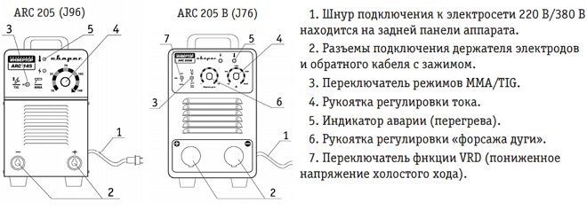 Рассмотрим основные технические характеристики сварочного инвертора ARC модели 205 (J96):