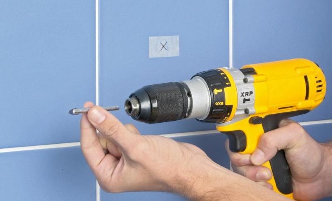 Сверление в плитке отверстий небольшого диаметра выполняется в следующей последовательности: