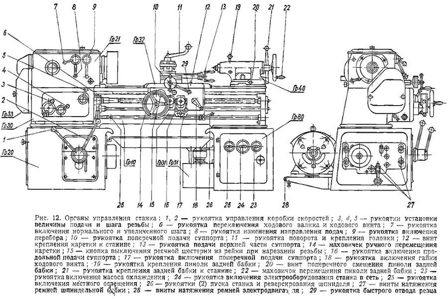Пример расположения органов управления токарного станка (нажмите, чтобы увеличить)