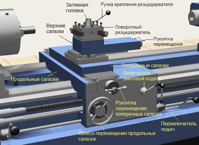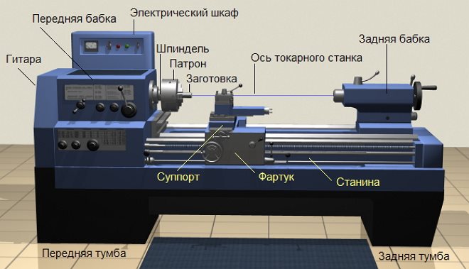 Все станки, предназначенные для выполнения токарной обработки заготовок из металла и других материалов, имеют в своей конструкции типовые конструктивные элементы: