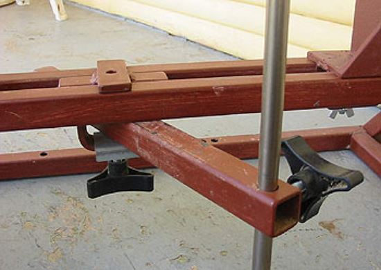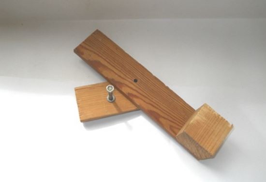 Теперь вам необходимо сделать упор, который будет выполнять роль задней бабки. Такой упор, устанавливаемый напротив закрепленного инструмента, можно изготовить из пары деревянных брусков и регулировочного винта, конец которого заточен под конус. Если вы на своем самодельном станке из дрели планируете обрабатывать не очень массивные заготовки из дерева, то зафиксировать такой упор на поверхности рабочего стола можно при помощи струбцины.
